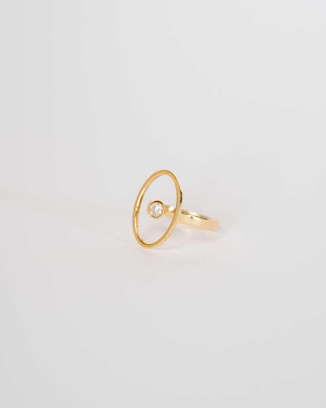 Composición: Anillo con forma ovalada en oro amarillo de 18kt. y un diamante de 0,40ct.