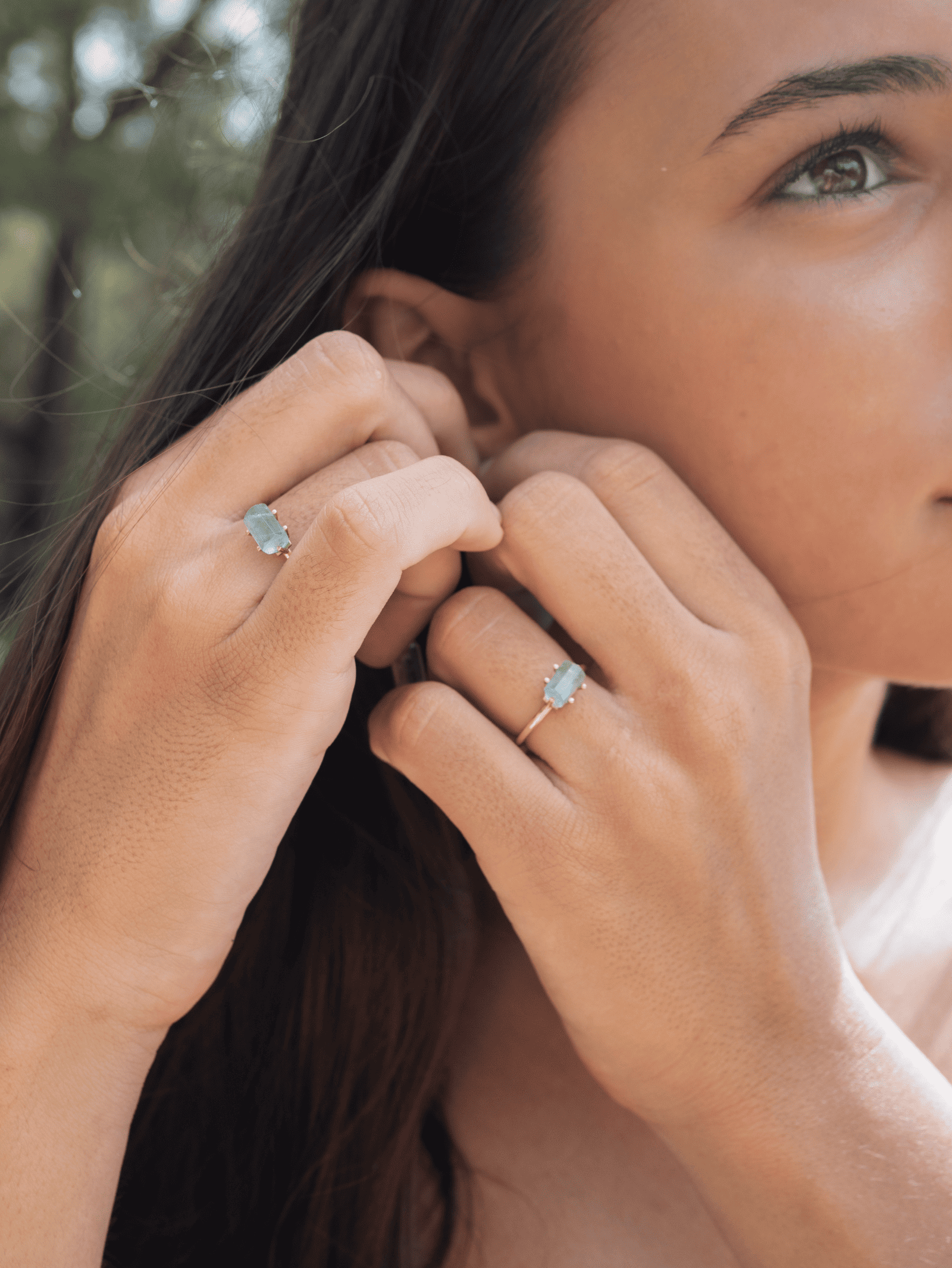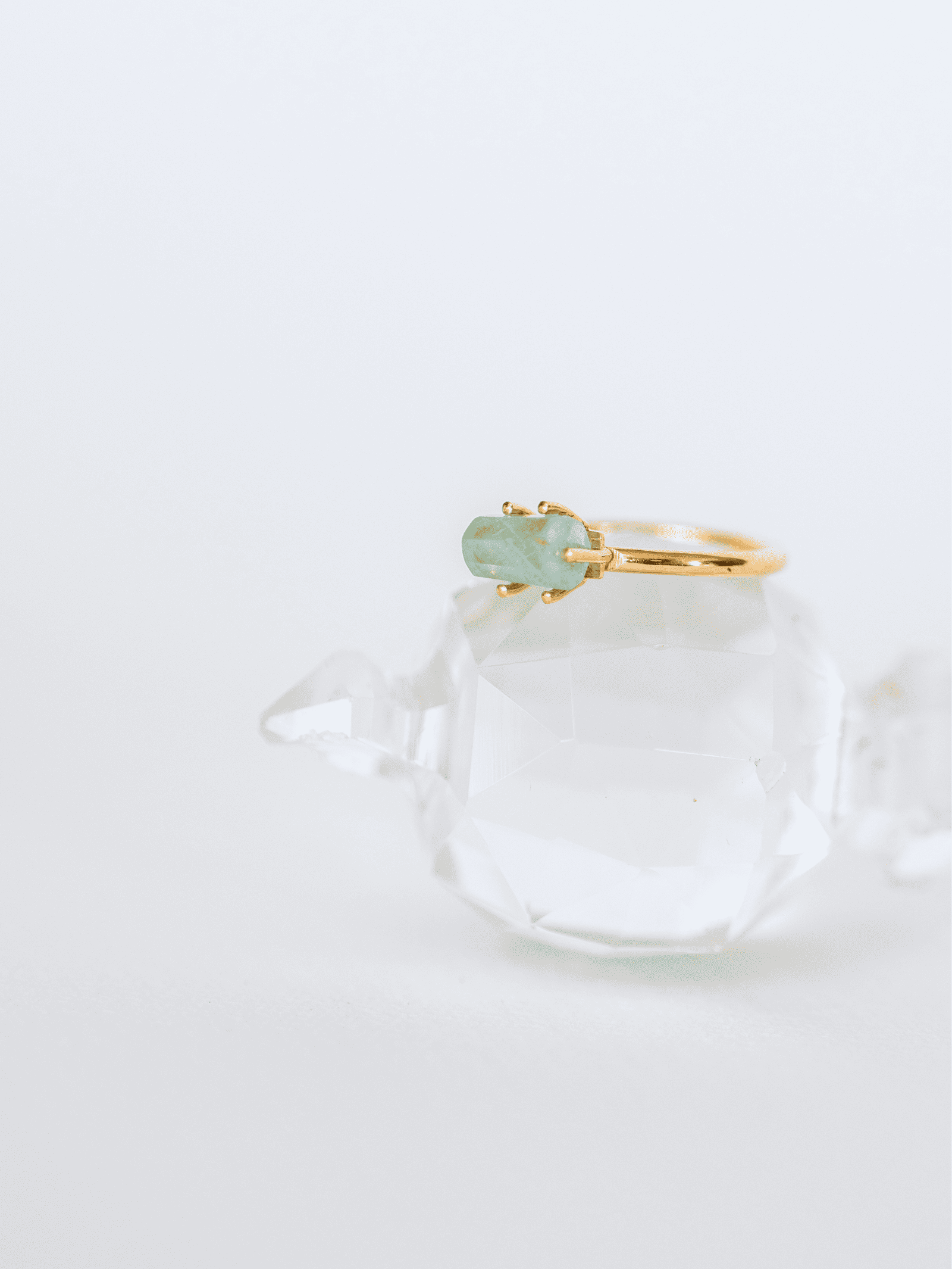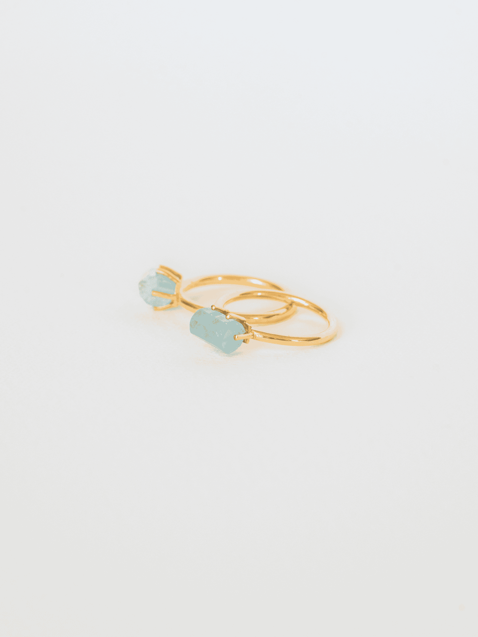 Anillo pequeño de Aguamarina bruta en oro de 18kt. La frescura de una gota de agua al caer.